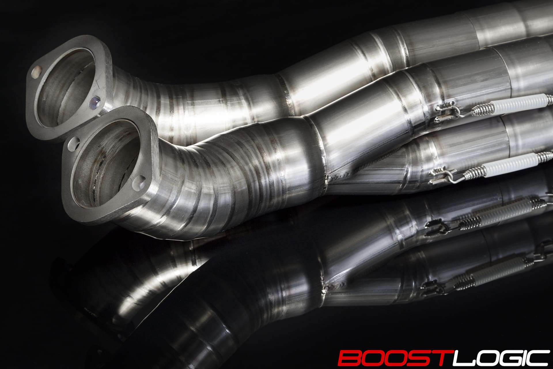 High Strength to Weight Ratio, Incredible Performance Gains Constructed completely of titanium, the benefits of our completely unique Quadzilla Midpipe are clear. Titanium is used in the most demanding engineering applications such as airframe and jet-engine parts. The use of titanium is quite rare in the automobile industry, used only for the most over-engineered, most exclusive parts. Titanium is a material that maintains its rigidity at extreme temperatures (well over 1500 degrees Fahrenheit). As a result, the Boost Logic Formula Series Quadzilla Midpipe has an extremely high strength to weight ratio, boasting much higher durability than a similar steel midpipe while drastically reducing weight. This results in uncompromised rigidity and the ability of the midpipe to hold up to abuse far better than any of its steel counterparts. The result is a perfect midpipe for your unlimited horsepower machine as well as your stock, daily-driven GTR.