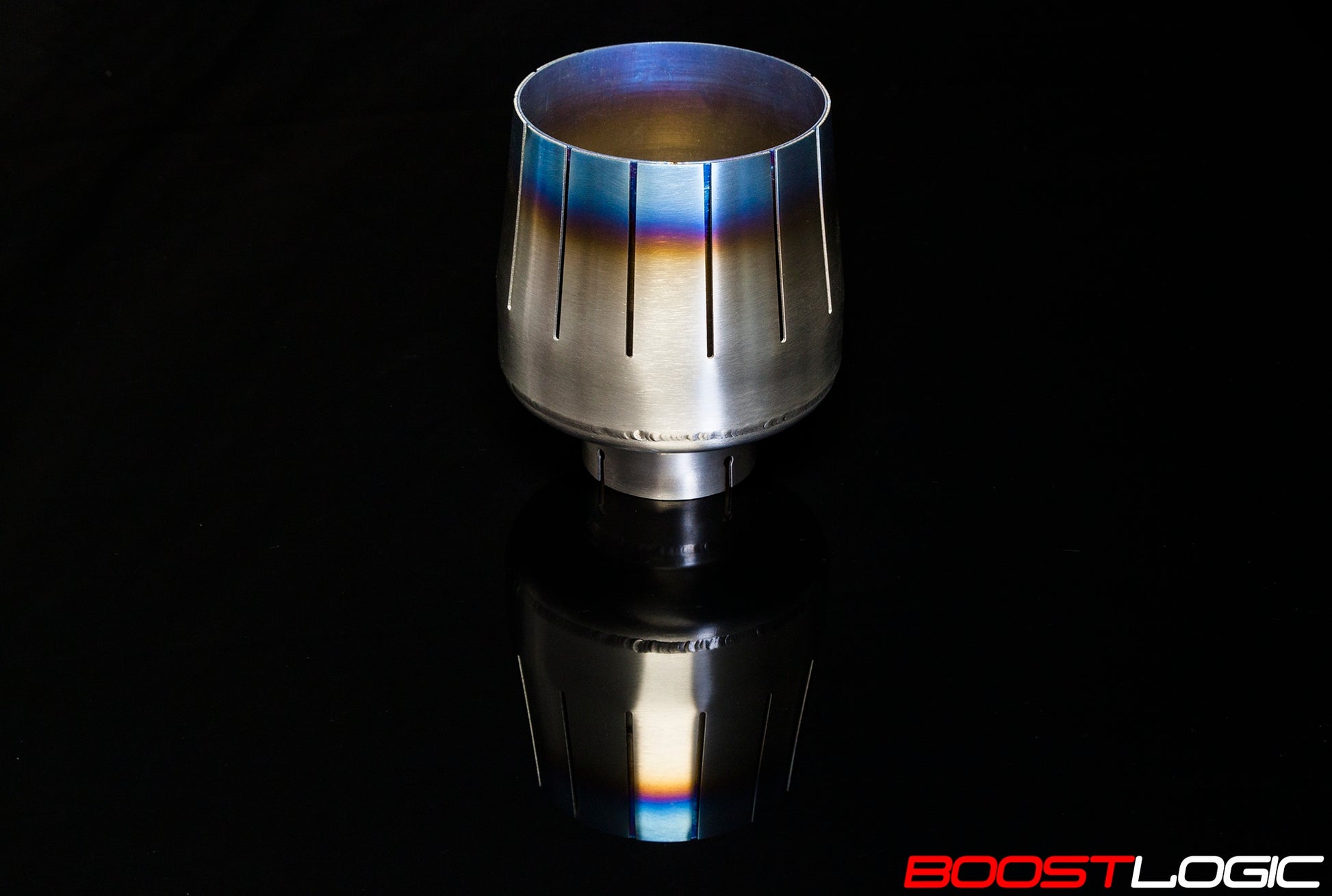 Boost Logic Nissan R35 GT-R F16 Titanium Exhaust Tips are the perfect upgrade for owners looking for an aggressive look to their Nissan R35 GT-R without the added cost and noise of buying a aftermarket catback exhaust system. Boost Logic Nissan R35 GT-R F16 Titanium Exhaust Tips are precision made from the highest grade titanium to ensure that you are getting the best quality GTR performance parts that money can buy.