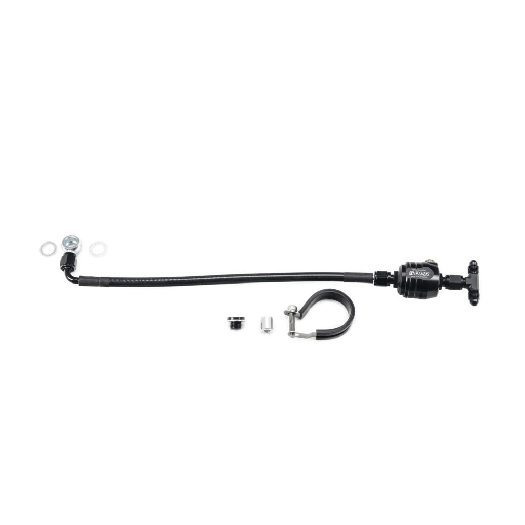 By restricting the oil pressure feeding both turbochargers the GT1R Oil Pressure Regulator kit greatly aids in reducing smoking caused by excess pressure getting past the internal seals on the turbochargers. This kit is easily adapted to a variety of turbo kits on the market.